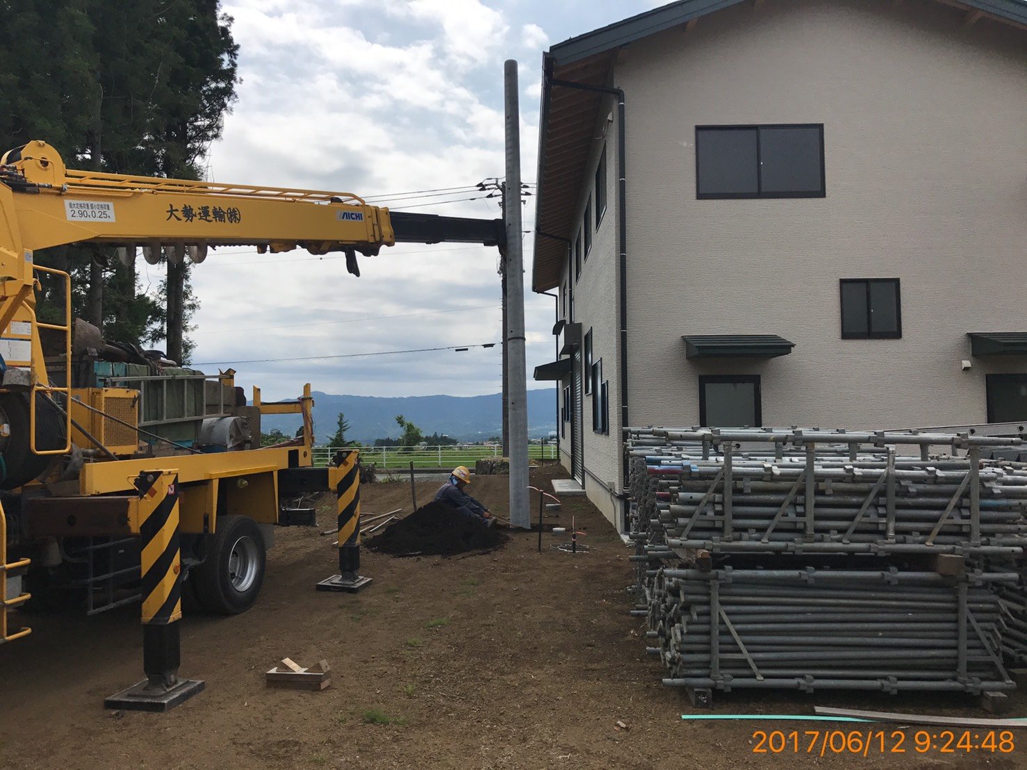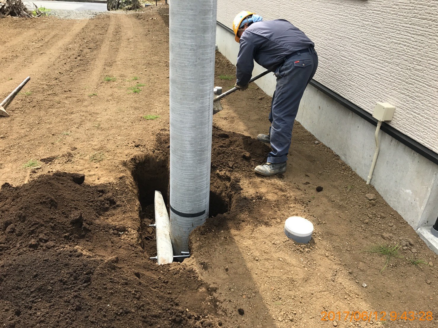 2019/03/07 電柱の立て方 敷地の広い邸宅への電気の引き込みや、表通りの電柱から距離のある場所の建物への電気の引き込みなどの場合、敷地内に電柱を立てて中継する事ができます。 このような工事も弊社で承ることが出来ます。 写真は2年前のものですが、ご相談・お問合せが多いため掲載させていただきました。 tagPlaceholderカテゴリ:
